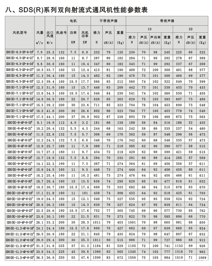 隧道式通风机分单向射流风机(SDS)和双向射流风机【SDS( R )】二种通风形式