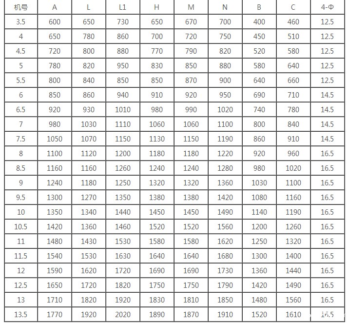 机号:3.5#-13.5# 风量:3053-84386m3/h 全压:143-1120Pa